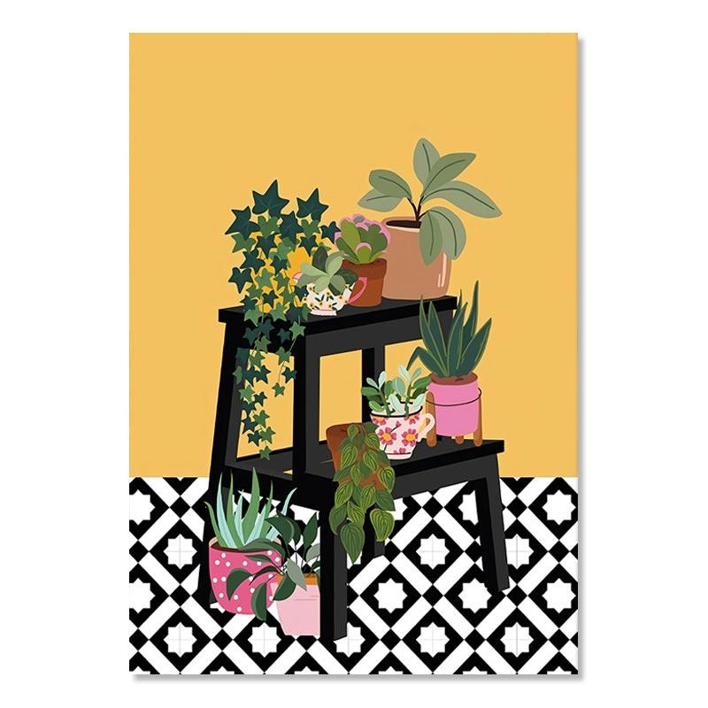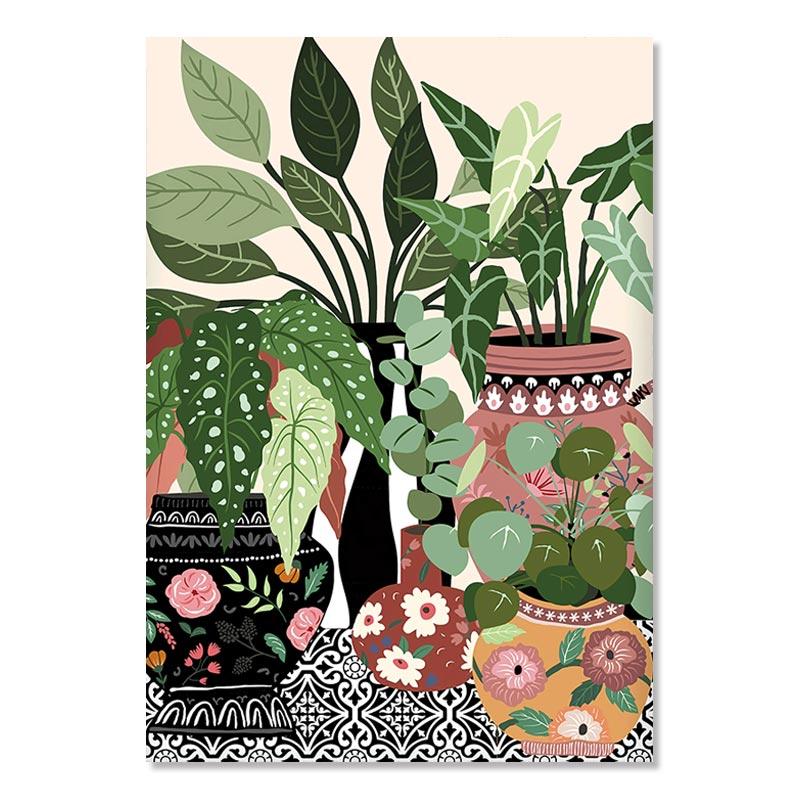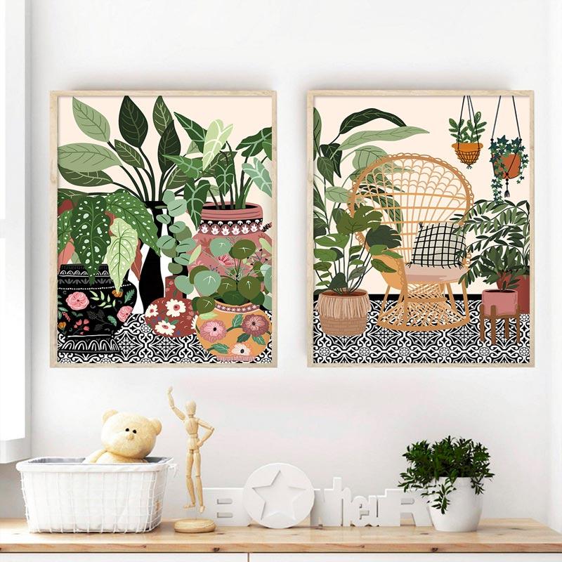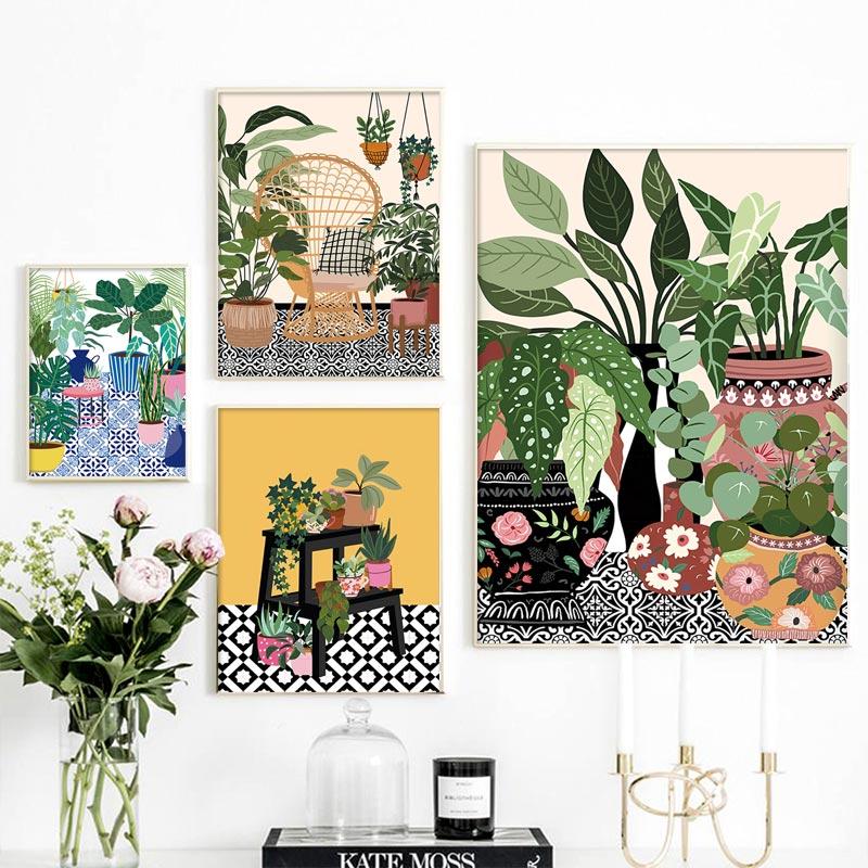 Скандинавская греческая плитка, ботанические комнатные растения, художественный постер в стиле бохо, зеленые листья, декор, картина, современное настенное искусство, холст, живопись, домашний декор