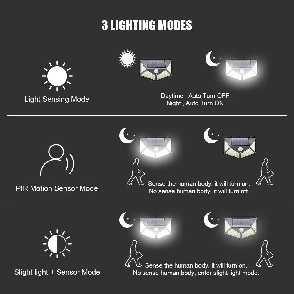 режим3:в ночное время или в темной области он будет автоматически включать свет, когда он чувствует движение человека, и он задерживает 20-25 секунд, когда люди выходят из него, чувствуя диапазон, затем он выключится.