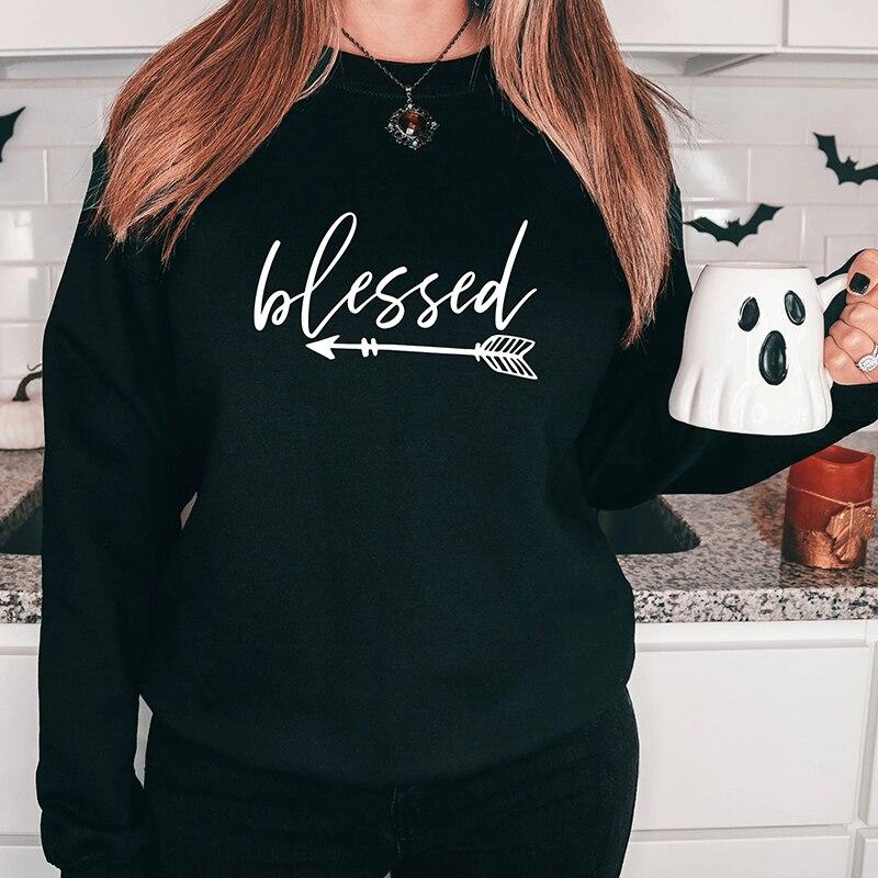 Женские толстовки с длинными рукавами Blessed Love Arrows, повседневная свободная уличная одежда, толстовки с круглым вырезом, вдохновляющая женская одежда, топы