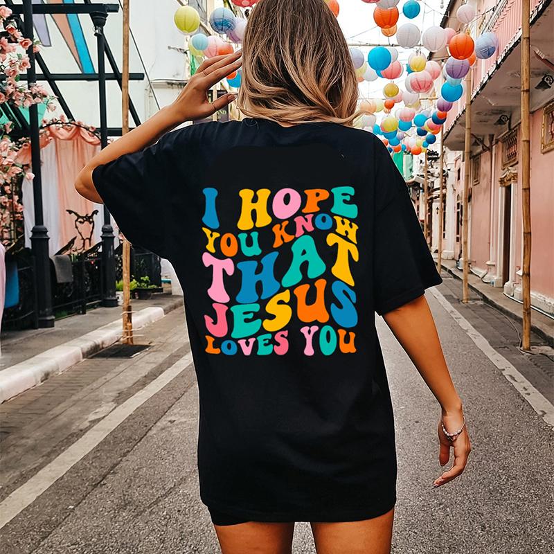 Я надеюсь, вы знаете, что Иисус любит вас, футболка большого размера с принтом на спине, христианская свободная футболка, женская модная повседневная хлопковая эстетичная футболка
