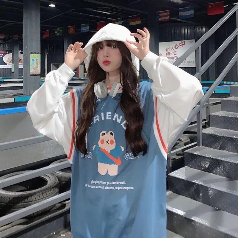 Весна-Осень, женский свитер из двух частей, толстовка с длинными рукавами, свободная ветровка для бойфренда, повседневная тонкая футболка