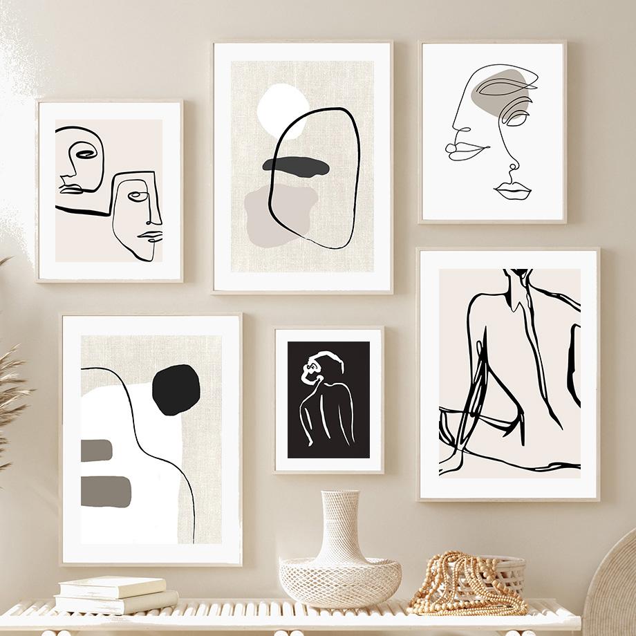 Линия любви нарисовала тело, лицо, современное настенное искусство, холст, живопись, абстрактные постеры на скандинавскую тему и принты, настенные панно для декора гостиной