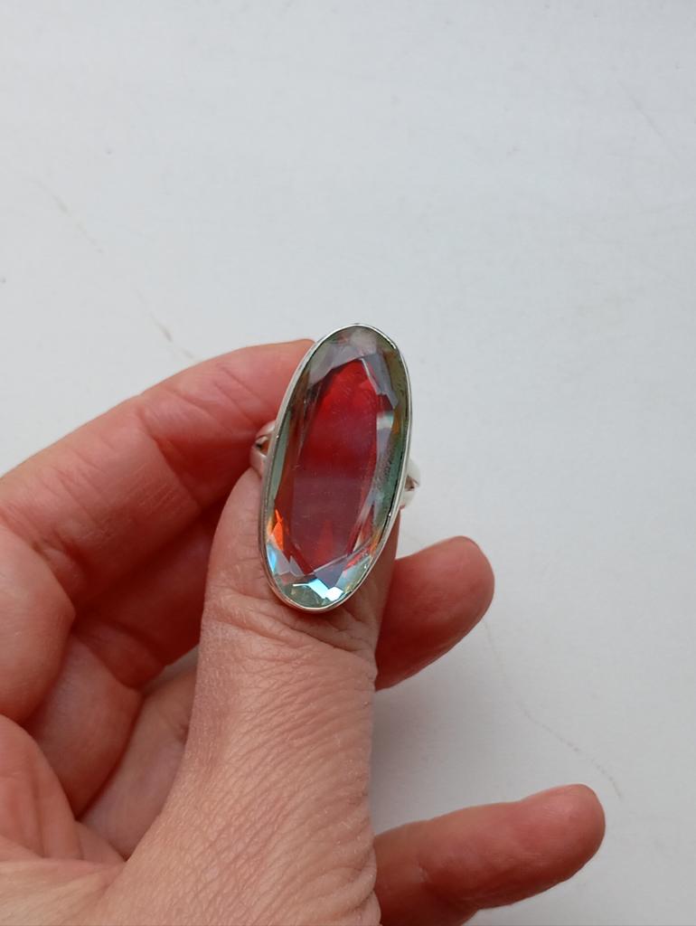 Кольцо из стерлингового серебра 925 пробы с радужным мистическим топазом. Изящное ювелирное изделие. Подарочное кольцо ручной работы с драгоценным камнем.