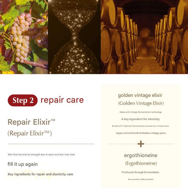 – Шаг 2: Восстановление и эластичность с Repair Elixir™ (Золотой Винтажный Эликсир™ + Эрготионеин)