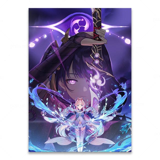Рамка из цельного дерева, горячая аниме-игра Raiden Ei Genshin Impact, украшение на холсте, принты, плакат, настенные картины, декор для гостиной, спальни, художественная живопись — купить товар онлайн с бесплатной доставкой по всему миру!
