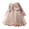 Платье принцессы из искусственного норкового бархата для девочек, зимняя вечерние принцесса с длинными рукавами, теплый сетчатый костюм, детская одежда для детей 1-7 лет