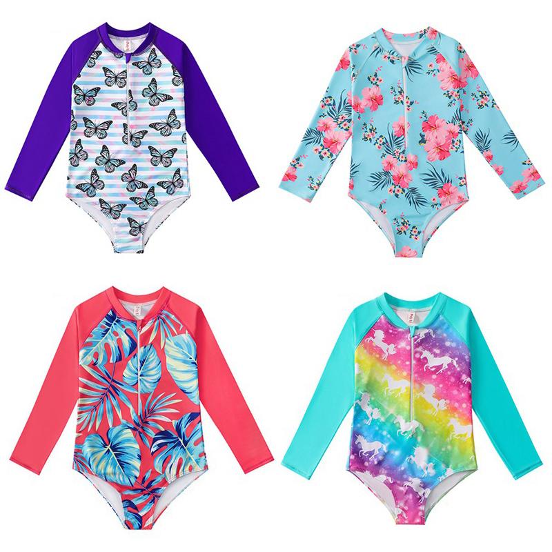 Детский цельный купальник с длинными рукавами для девочек, боди на молнии с милым мультяшным принтом, купальники, пляжная одежда — купить товар онлайн с бесплатной доставкой по всему миру!