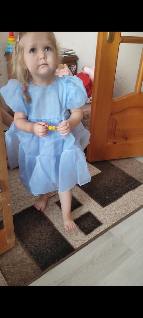Красивое платье, хотя качество ткани не уау. Дочки оно напомнило Золушку. В ширену подошло и хватит на долго, но можно было и длинее. Надо было заказать на размер больше. Рост дочки 104.
