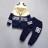 Весенне-осенний топ с капюшоном и длинными рукавами с принтом для мальчиков + брюки, комплект из 2 предметов