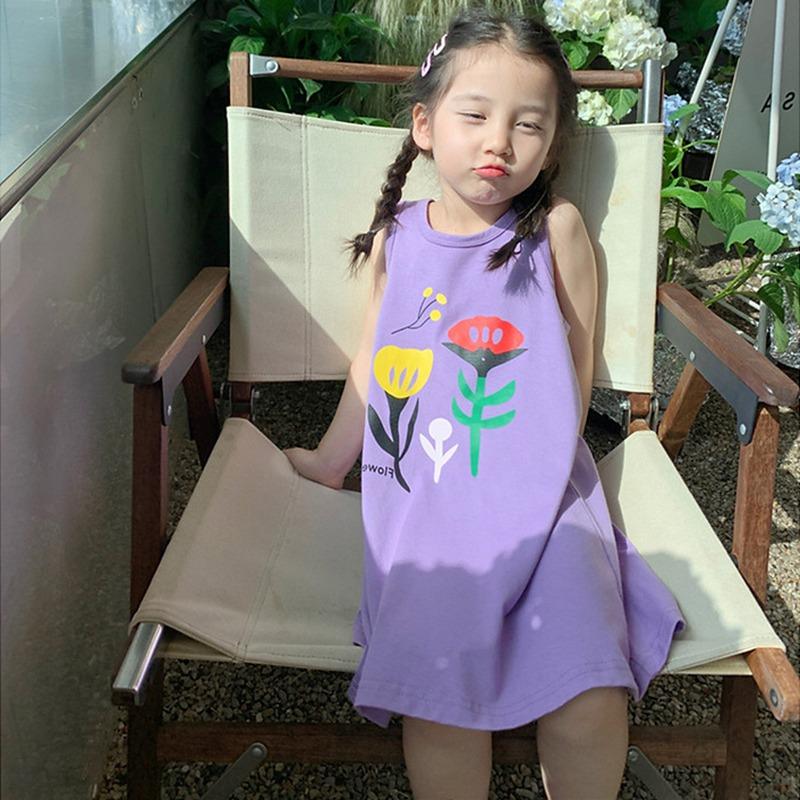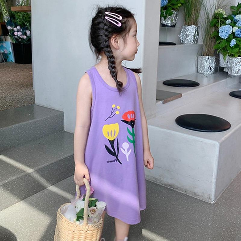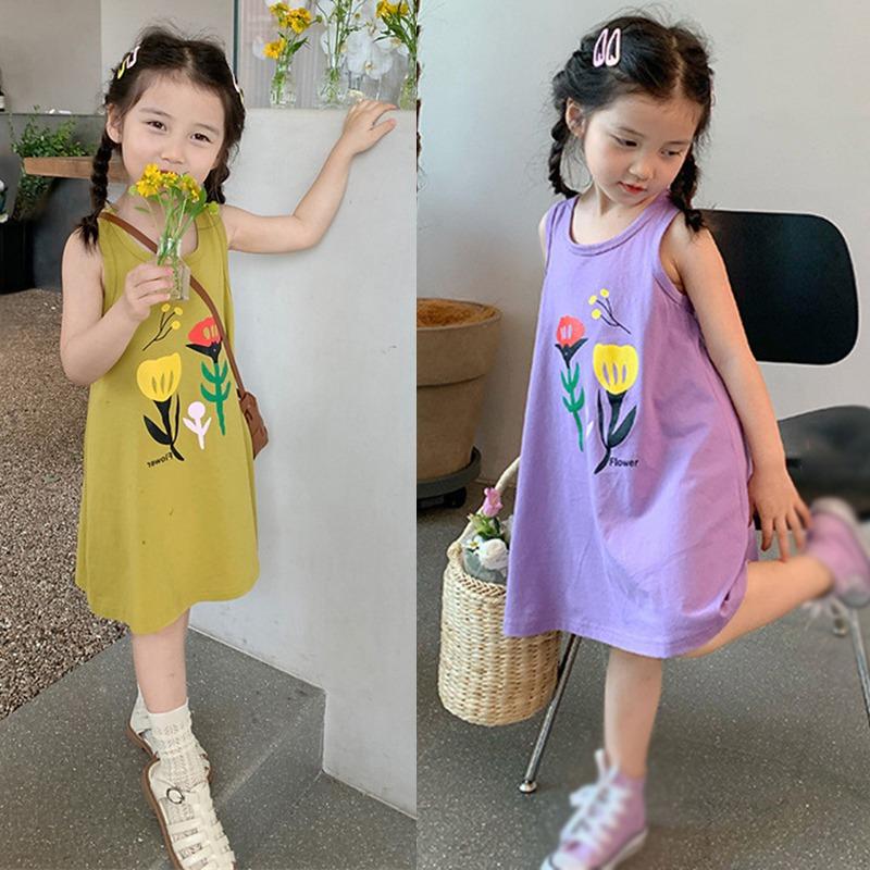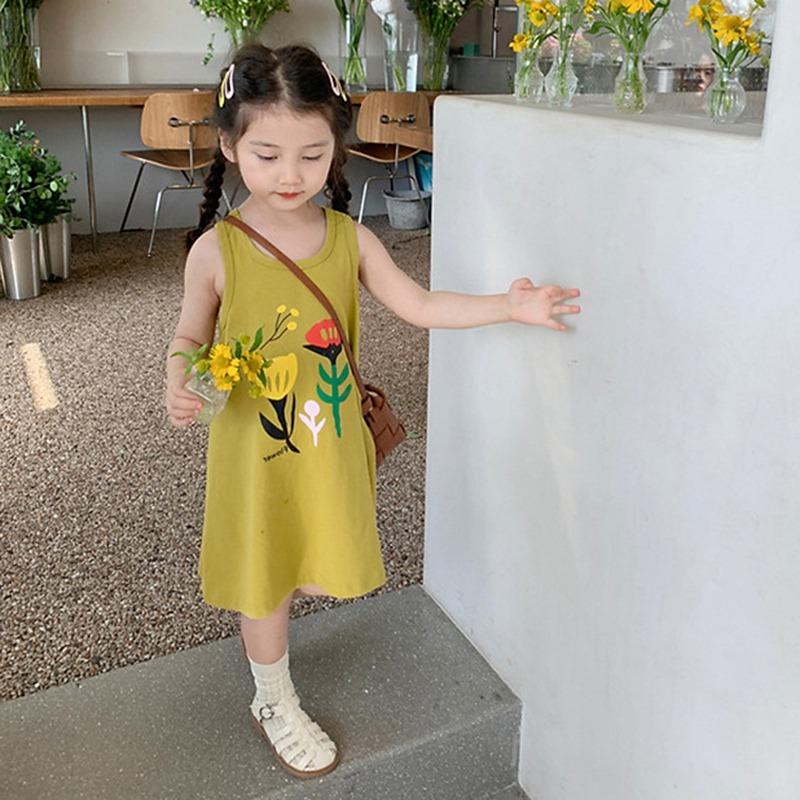 Лето, ранняя осень, свободное платье без рукавов для маленьких девочек, шикарное уличное повседневное платье с цветочным принтом