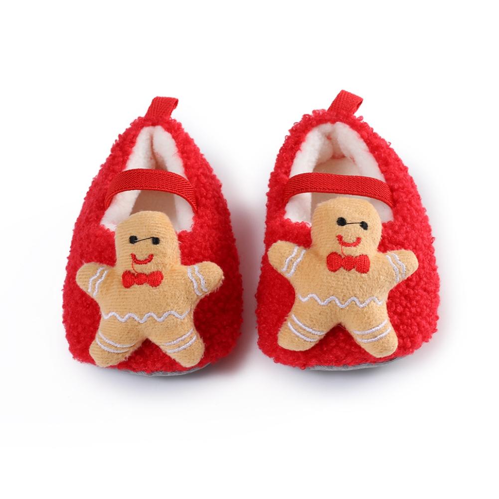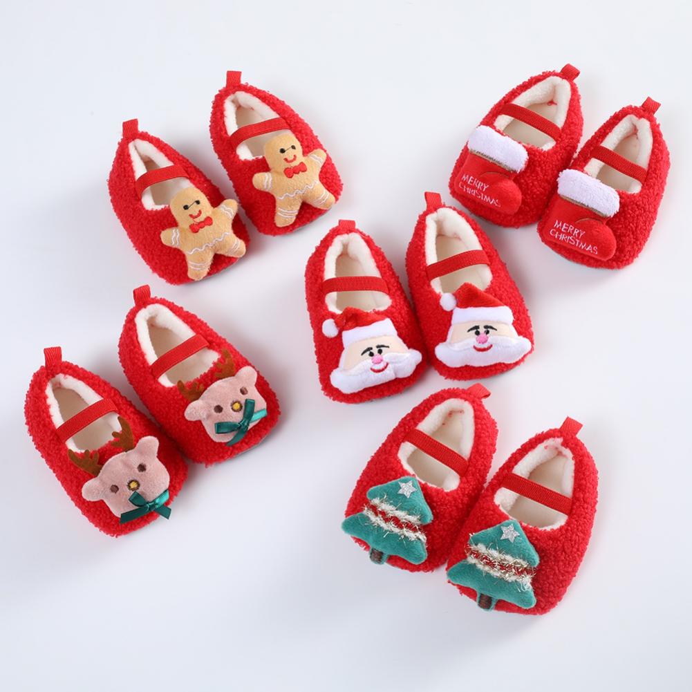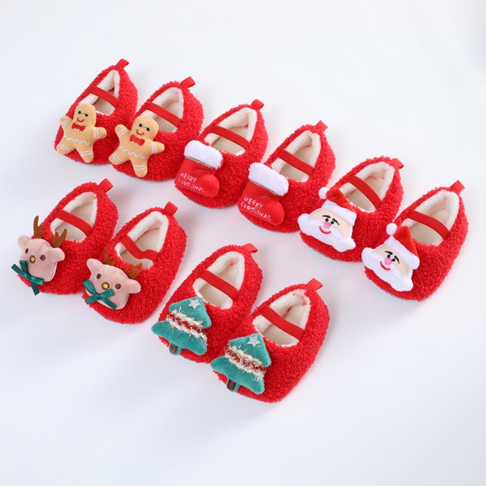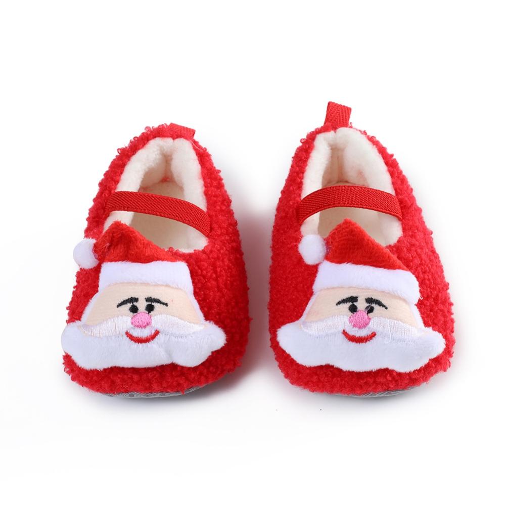 Младенческая флисовая зимняя обувь для маленьких мальчиков и девочек, рождественская обувь, Санта-Клаус, первый ходок, плюшевые кроссовки для малышей, флисовые кроссовки для новорожденных, 0–12 месяцев
