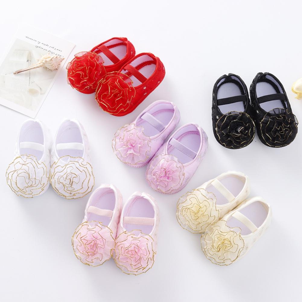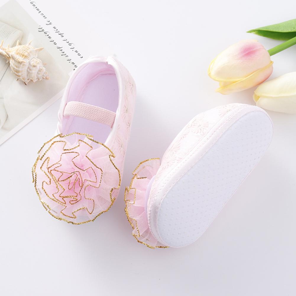 Обувь для новорожденных, кружевная обувь для крещения маленьких девочек, милая детская мягкая обувь для малышей 0–18 месяцев с резинкой для волос