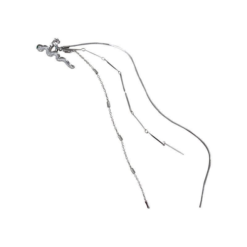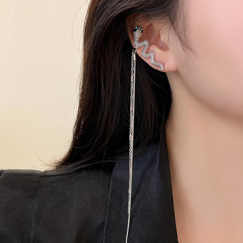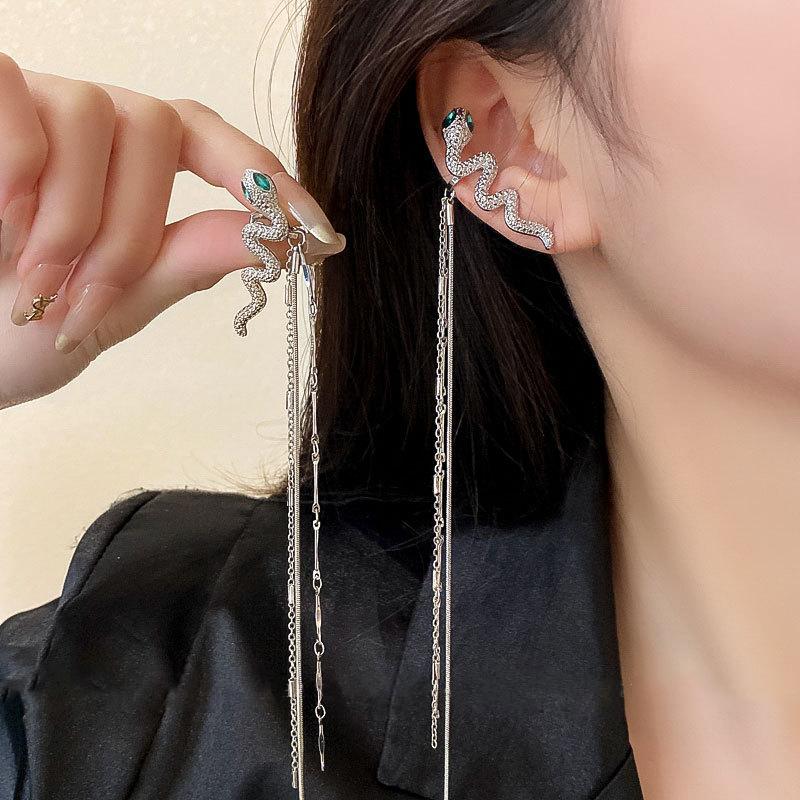 Новый зажим для ушей без ушей со стразами и змеей, длинная цепочка с кисточкой, зажим для ушей, персонализированные геометрические серьги, сетчатые красные серьги