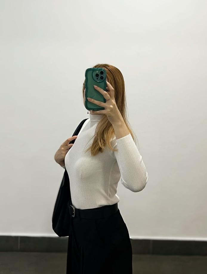 Водолазка в белом цвете 🤍 Обзор от Юли 😊 Сразу назову единственный минус — рукава для меня коротковаты. В остальном она отличная: 👍 Мягонькая, приятная на ощупь 👍 С горловиной, которая не давит и не натирает 👍 Без единого огреха, типа торчащих ниток или запаха Замеры: Обхват груди - 73 см Обхват талии - 66 см Ширина плеч - 32 см Длина рукава - 53,5 см Длина вещи - 55 см Мои параметры: Рост - 165 см Грудь - 84 см Талия - 70 см Бедра - 98 см