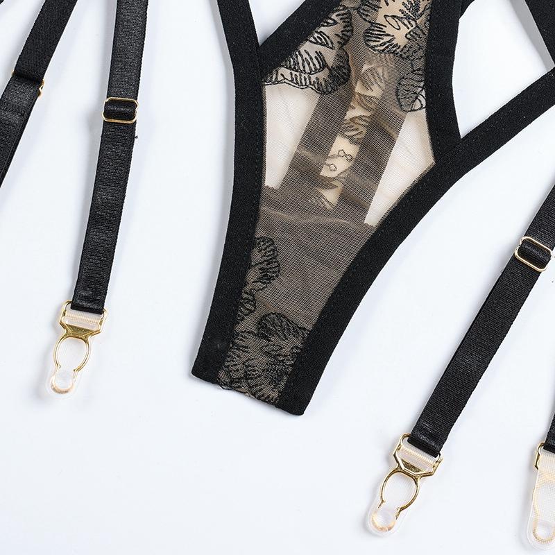 Женское эротическое нижнее белье, тонкое прозрачное сетчатое нижнее белье с вышивкой, сексуальное женское белье на косточках, бюстгальтер с подвязками, стринги, костюм