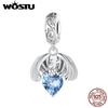 WOSTU Стерлингового серебра 925 пробы, белый орел, подвесная бусина, синий циркон, кулон, яркие подвески в виде рыси, бусины в форме кошки для женщин, браслет и ожерелье, ювелирные изделия