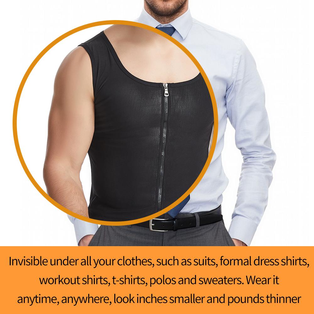 · 【 HIDDEN & SLIM BODY SHAPER 】 Высококачественный полиэстер идеально прилегает к вашему телу, комфортный, но практичный дизайн нашей мужской компрессионной нижней рубашки для похудения обеспечивает немедленный эффект похудения, нося ее под всеми типами одежды, такими как тренировочные рубашки, футболки, свитера и официальные рубашки, вы почти забудете носить спортивный жилет.