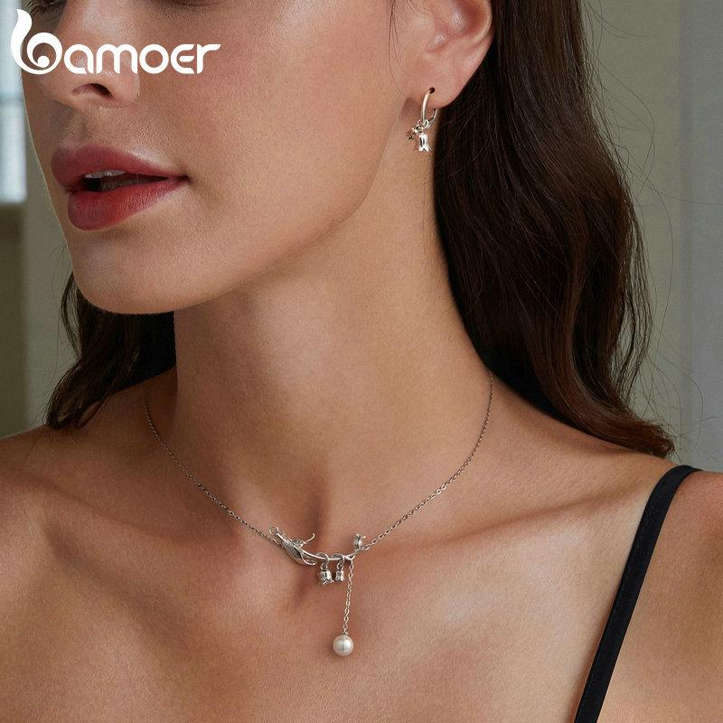 BAMOER Стерлинговое Серебро 925 пробы Романтическое ожерелье-цепочка с ландышами для женщин, подарок на помолвку