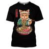 Летние мужские футболки с 3D японским самураем и котом, модные повседневные индивидуальные крутые футболки с короткими рукавами в уличном стиле с принтом