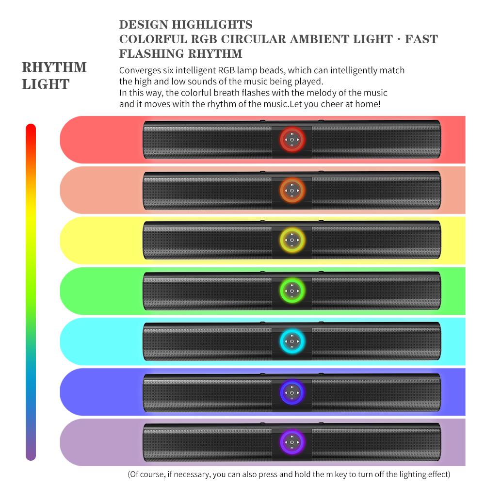 Динамики звуковой панели RGB Цветной свет Беспроводная связь Bluetooth Домашний кинотеатр Звуковая система Стерео с Tf FM-радио Аудио ТВ Сабвуфер Беспроводная эхо-стена