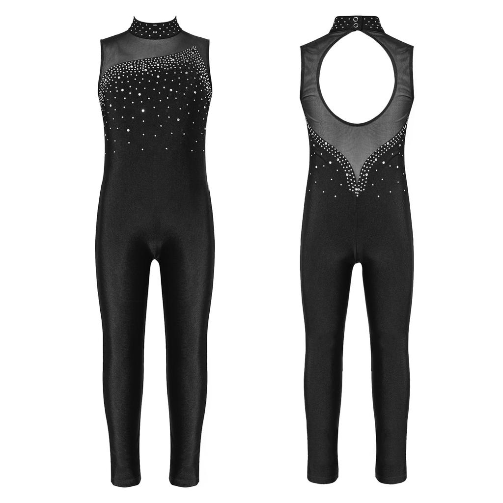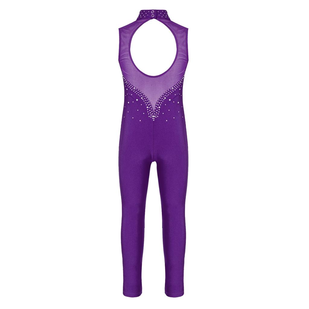 Детский комбинезон для балета и танцев для девочек, комбинезон без рукавов со стразами для гимнастики, танцевальных трико, комбинезон для фигурного катания, сценические костюмы