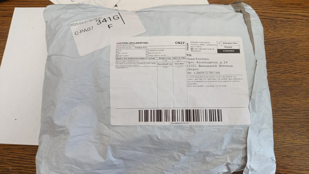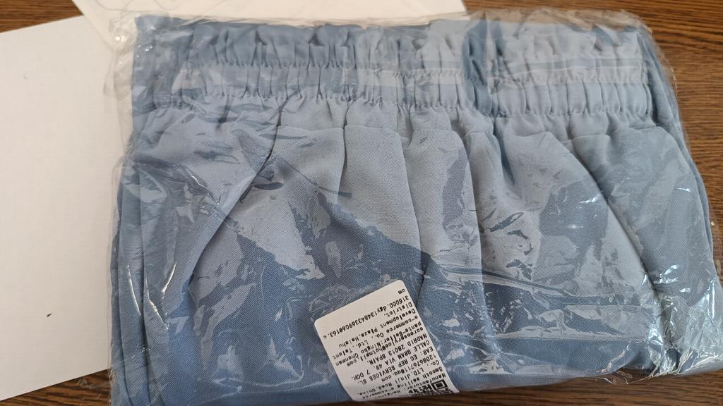 Это самая ожидаемая посылка из всего заказа. Брюки вау. На рост 175 и украинский размер 52 сели идеально. Только мотня практически на середине внутренней стороны бедра. Ребенок сказал, что так сейчас модно. Цвет красивый. Ткань интересная, видно что синтетика, но очень мягкая, струящаяся. Необычная. Звезду сняла за грязное пятно на штанине. Камера к сожалению его не захватила. Брюки шикарные. РЕКОМЕНДУЮ.