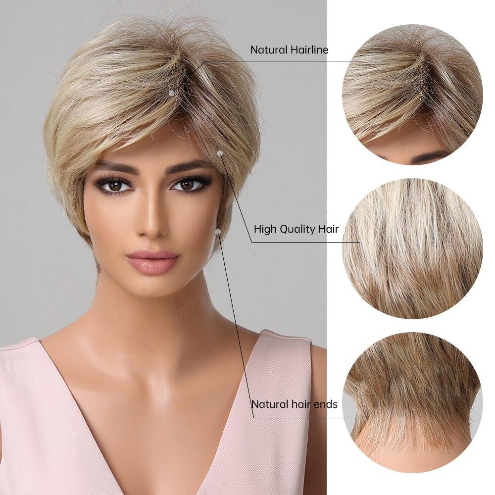 EASIHAIR Короткие прямые парики Платиновая блондинка Ombre Парики из синтетических волос для женщин Натуральные волосы Futura Ежедневные парики Термостойкие
