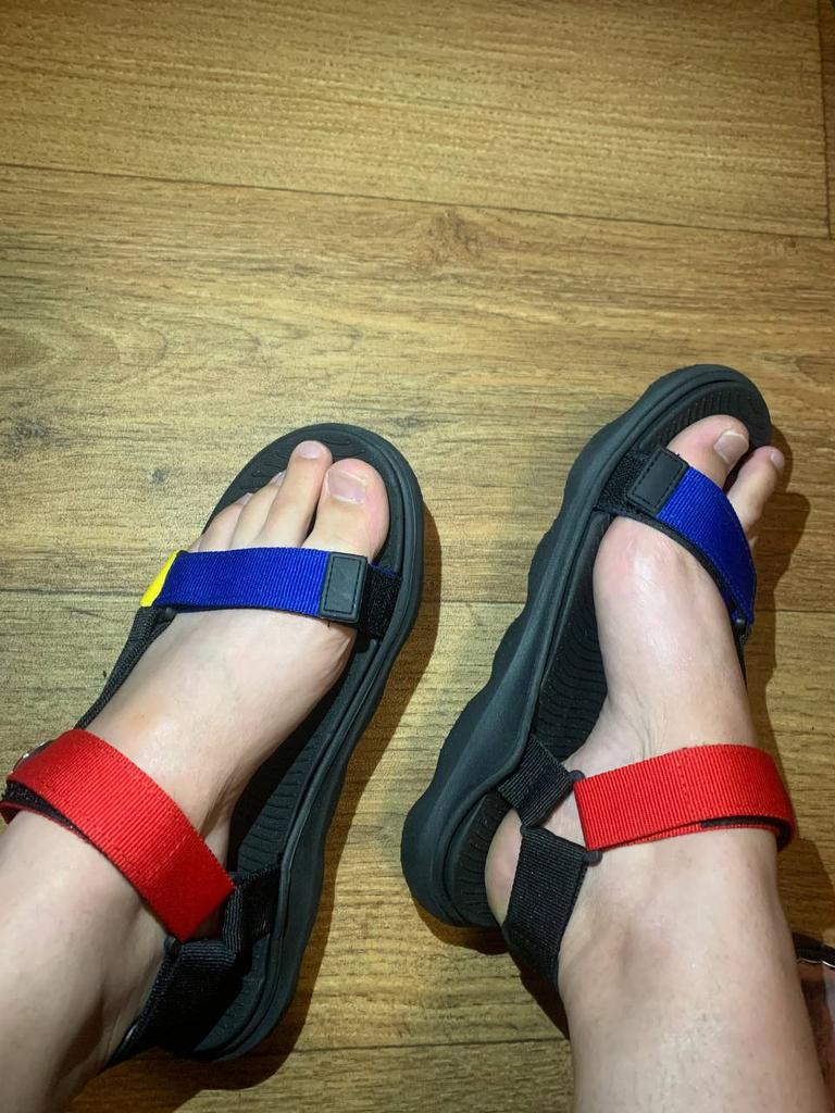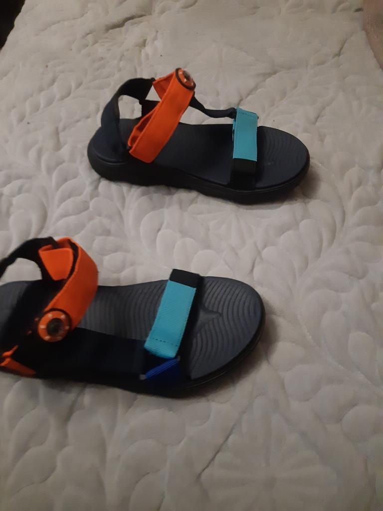 Сандали выиграла за 1 рубль. Очень понравились, соответствуют фото и описанию, размер соответствует,ину если только на один размер маломерят. Качество хорошее, подошва плотная. Все лямки из плотной ткани, регулируются, думаю прослужат долго. Цвет яркий красивый как на фото.