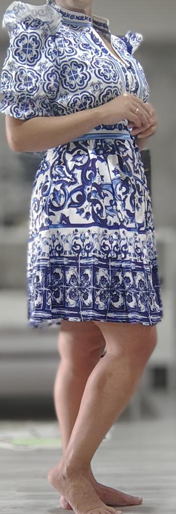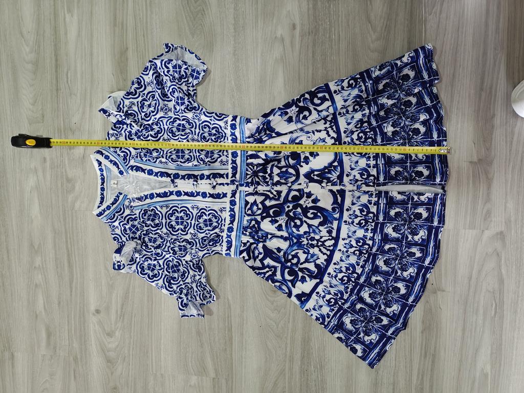 Первое впечатление: очаровательное платьице! Пошив добротный, печать рисунка четкая, яркая. Но вот не знаю как эта ткань, синтетический шелк, поведет себя при стирке и в жару. Об этом напишу позже. На мои параметры ог98, от 75, об 98 , рост 157 см село четко как надо. Ткань не тянется, рукава оторочены резинкой. Замеры платья на фото. Итак, жара +28, лёгкий ветерок - полет нормальный, дышит. Стирка ручная, нежная.