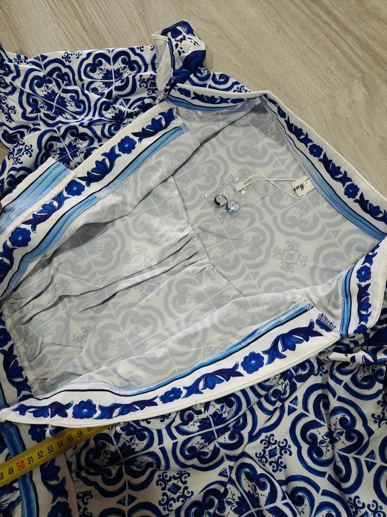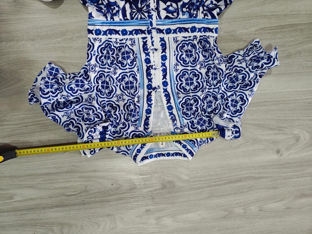 Летнее подиумное красно-синее фарфоровое вечернее платье, женские пляжные мини-платья с v-образным вырезом и расклешенными рукавами, оборками и пуговицами с цветочным принтом — купить товар онлайн с бесплатной доставкой по всему миру!