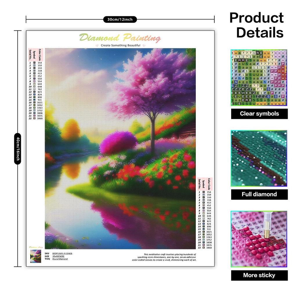 Полная круглая алмазная живопись Дерево Полная круглая вышивка Пейзаж Мозаика Рукоделие Ручная работа Фотографии Настенный декор 30x40 см/12x16 дюймов