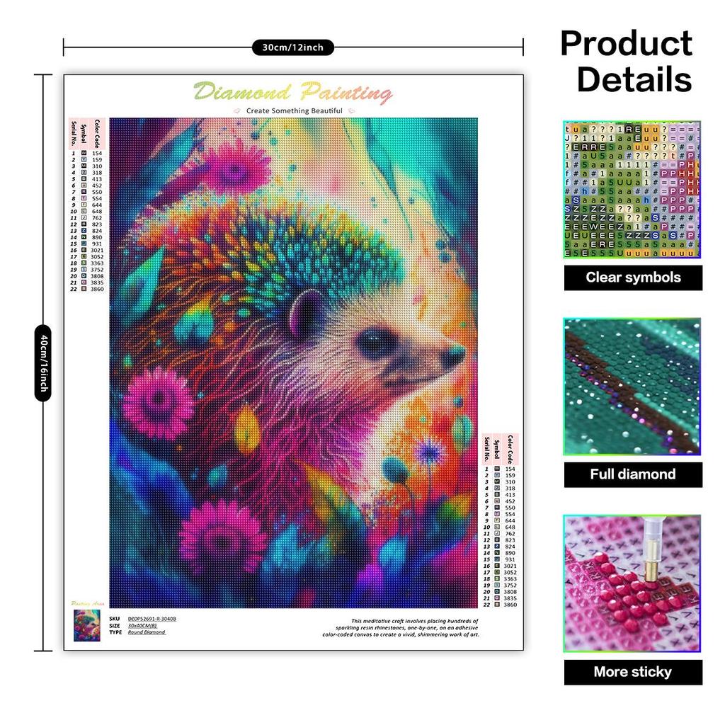 5D алмазная живопись животное еж полная круглая мозаика цветок вышивка крестиком полный комплект домашний декор 30x40 см/12x16 дюймов