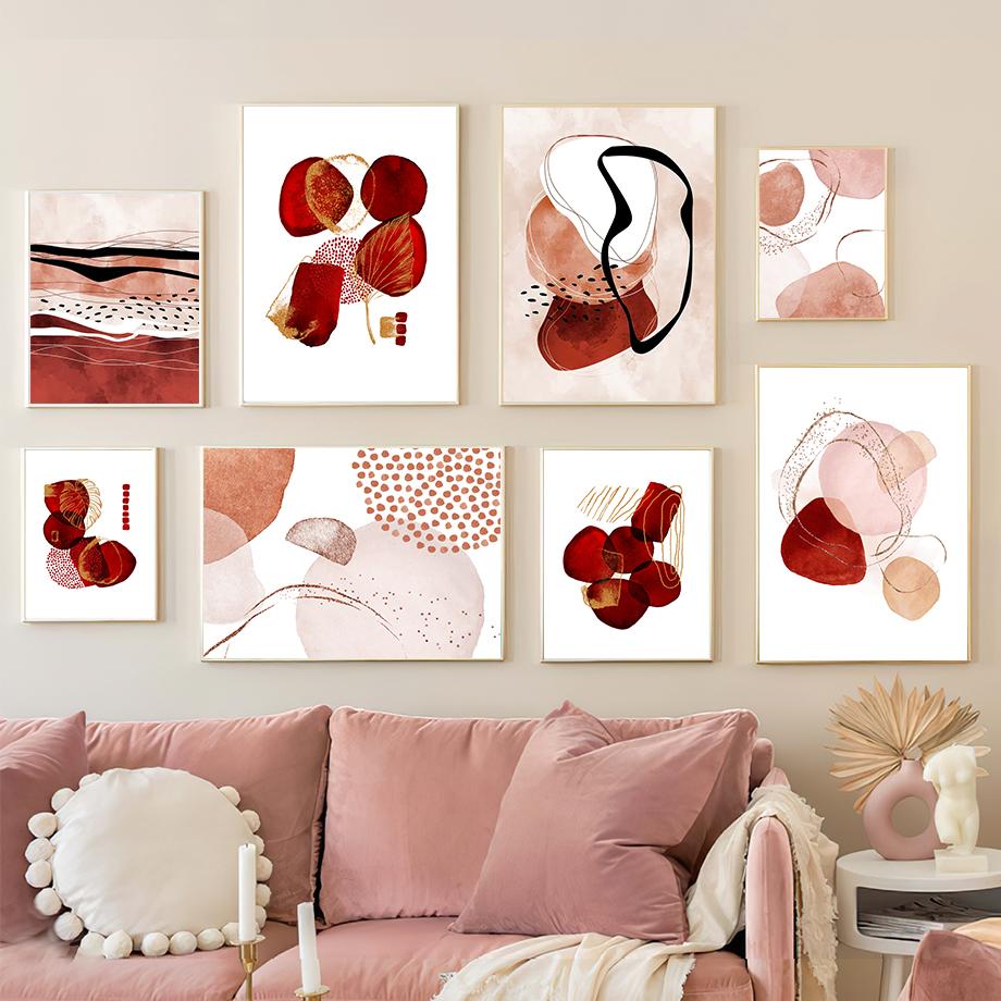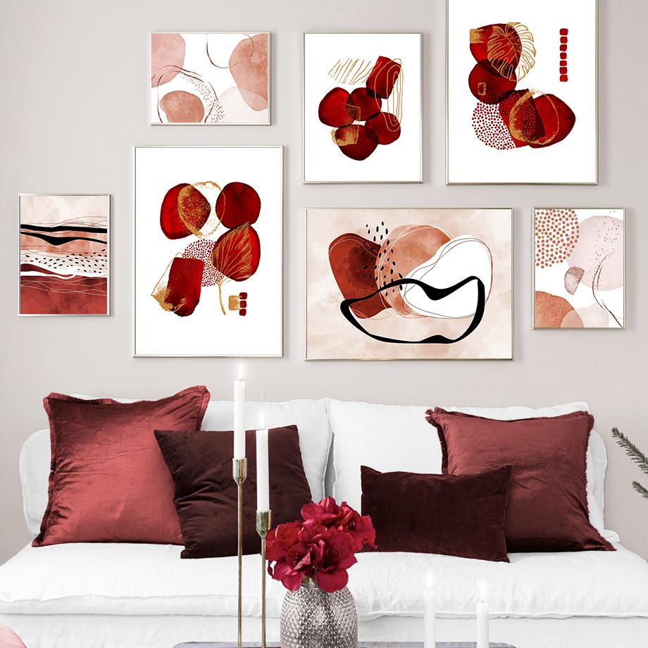 Настенная картина на холсте, красные золотые чернила, современная абстракция, украшение для гостиной, постеры и принты, настенные картины для дома, салон-клуб