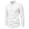 Мужская однотонная повседневная облегающая деловая рубашка с воротником-стойкой и длинными рукавами