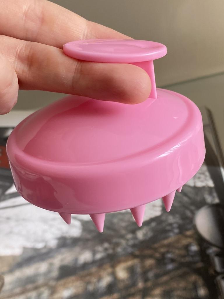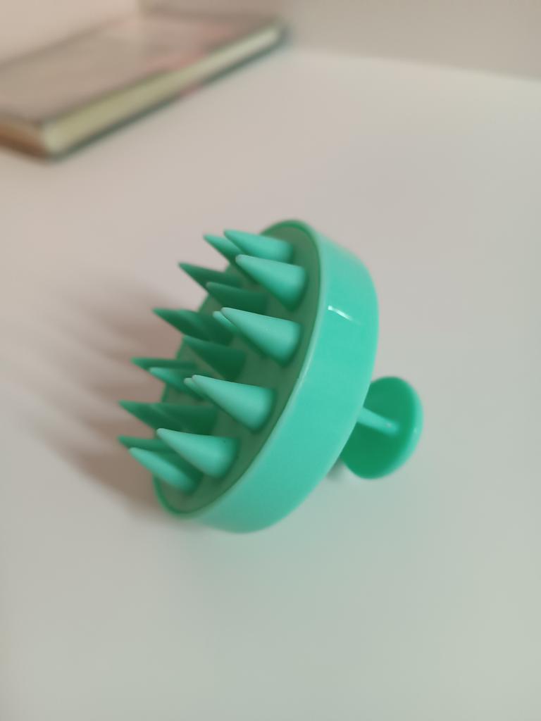 Массажная щетка для мытья головы Удобна в использовании, хорошо вспенивает шампунь при этом массирует кожу головы. Если использовать регулярно то благодаря усиленному кровообращению корни волос должны становится сильнее. Выполнена из пластика, зубчики из плотного силикона: не царапают и не травмируют кожу.