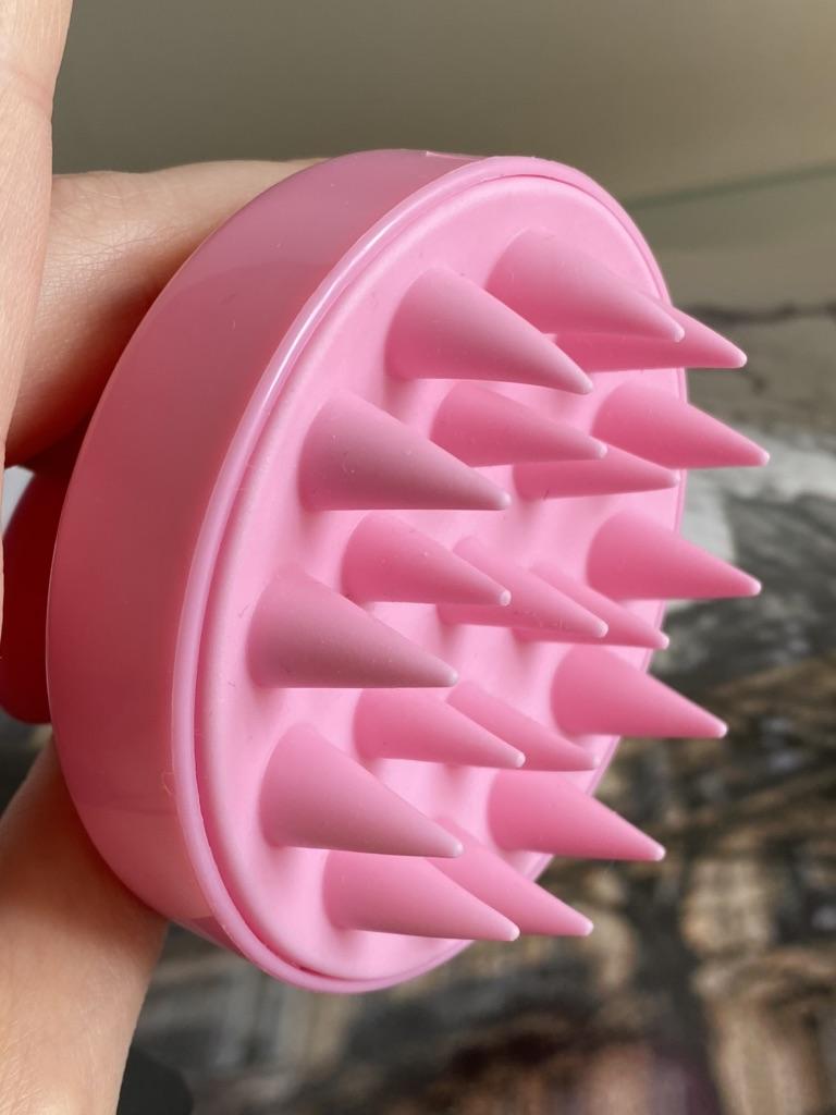 многофункциональная: ею можно наносить масла для кожи головы и разогревать их прямо на голове массажем, что позволяет маслам проникнуть глубже; лучше очищает и отшелушивает кожу головы при мытье шампунем; можно делать простой массаж для кожи головы. очень полезная и удобная для меня она твёрдая, больше мыть голову, но на сухие волосы хорошая