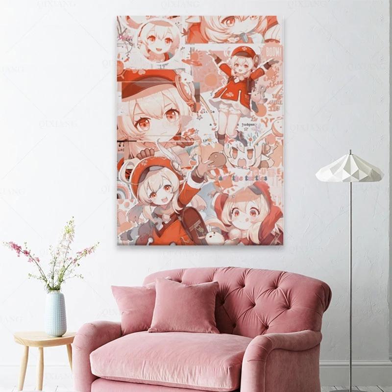 Рамка из цельного дерева, холст, картина Genshin Impact Klee, персонаж, вышитый стиль, плакат, высокое качество печати, наклейки на стену, украшение для комнаты для девочек