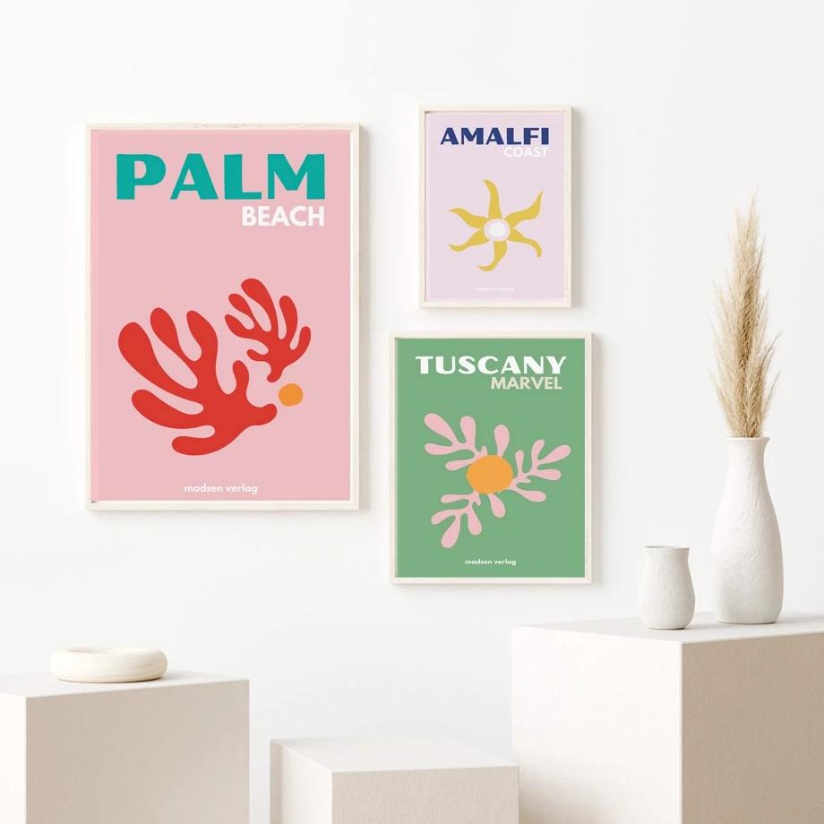 Рамка из цельного дерева Абстрактные пальмовые листья Коралловые путешествия Красочные винтажные постеры и принты Холст в скандинавском стиле Настенная живопись Украшение гостиной