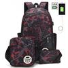 Комплект из 3 предметов, рюкзак для мужчин и женщин, повседневный рюкзак для ноутбука с зарядкой через USB, школьная сумка большой емкости, уличный дорожный рюкзак