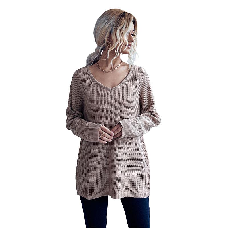 Осенний женский свитер, повседневный женский свободный однотонный свитер с длинными рукавами и v-образным вырезом, толстый игольчатый свитер