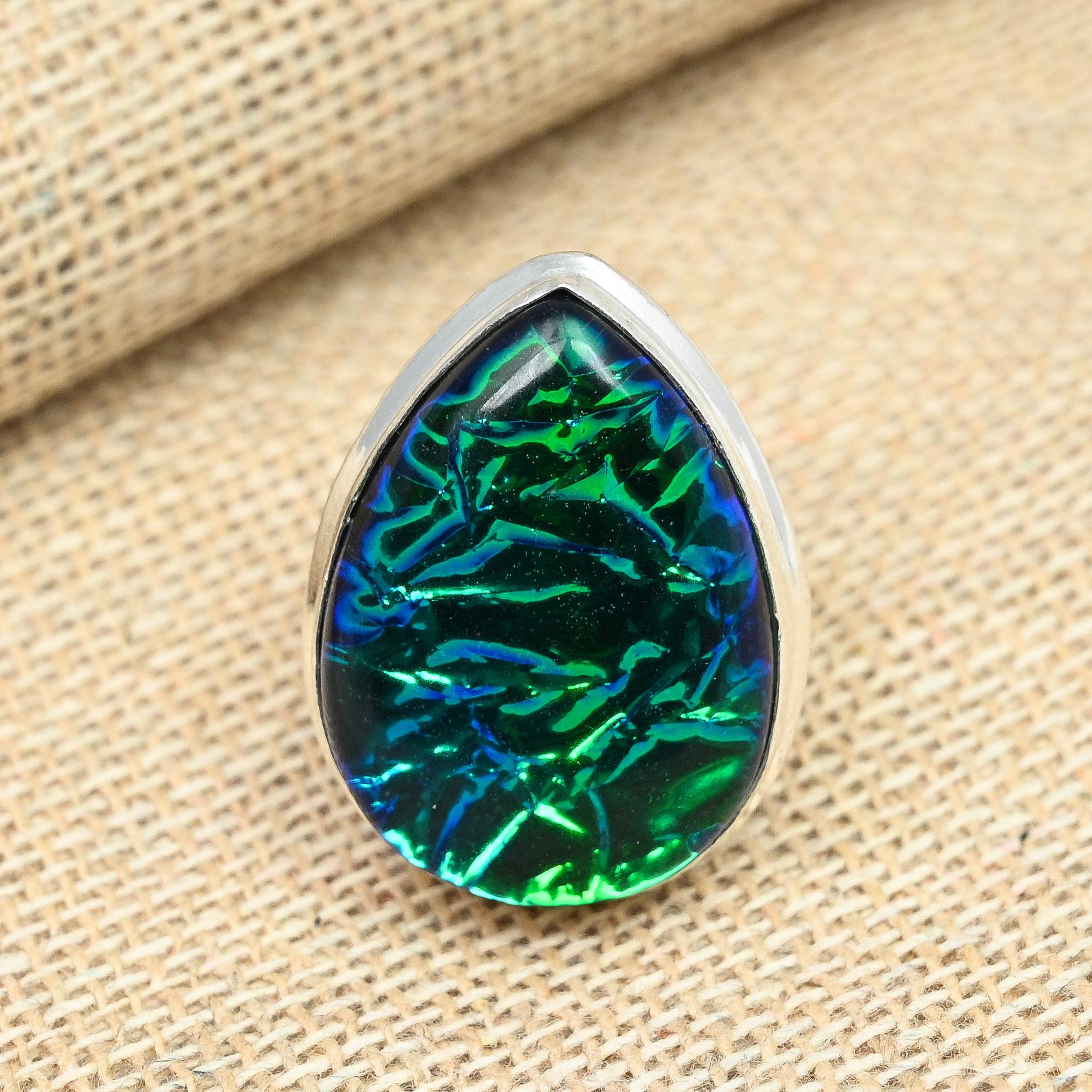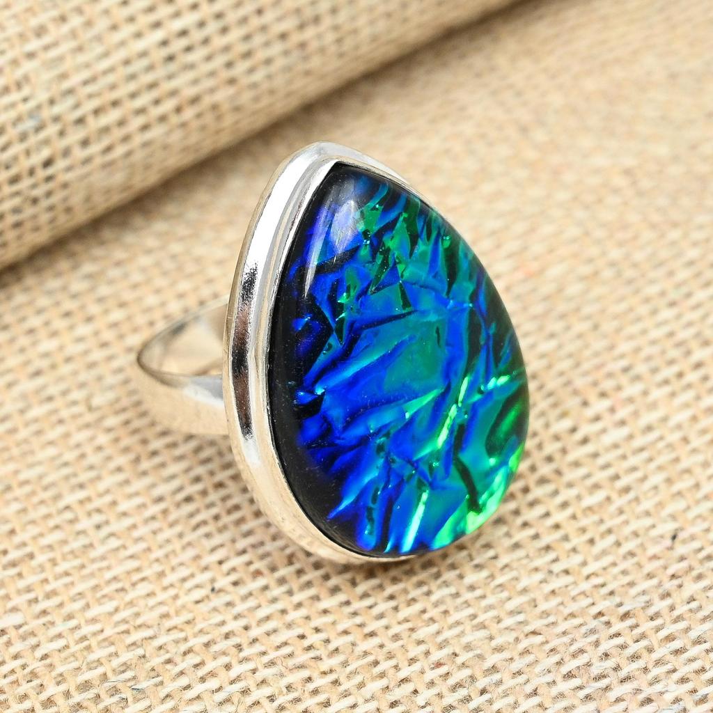 Кольцо ручной работы в форме груши из стерлингового серебра 925 пробы с синим австралийским тройным опалом и драгоценным камнем