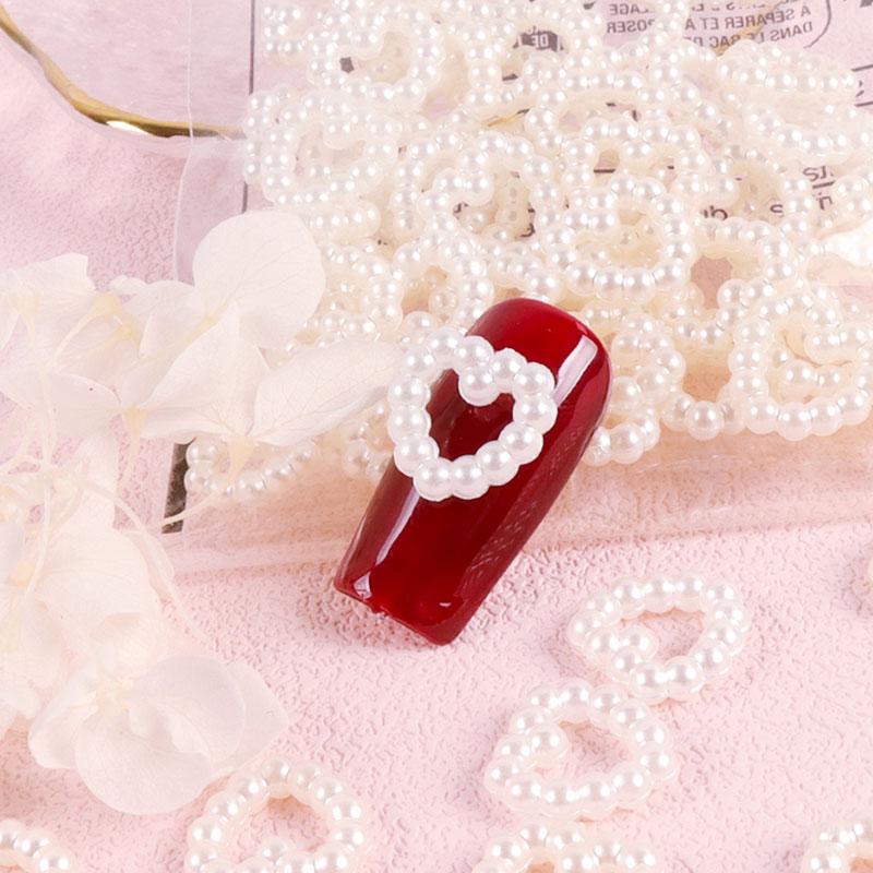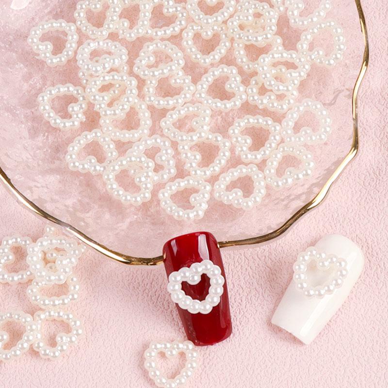 50 шт., жемчужные 3D полые сердечки для ногтей, подвески Kawaii, блестки, горный хрусталь, кулон, аксессуары для ногтей, товары для рукоделия, украшения для маникюра