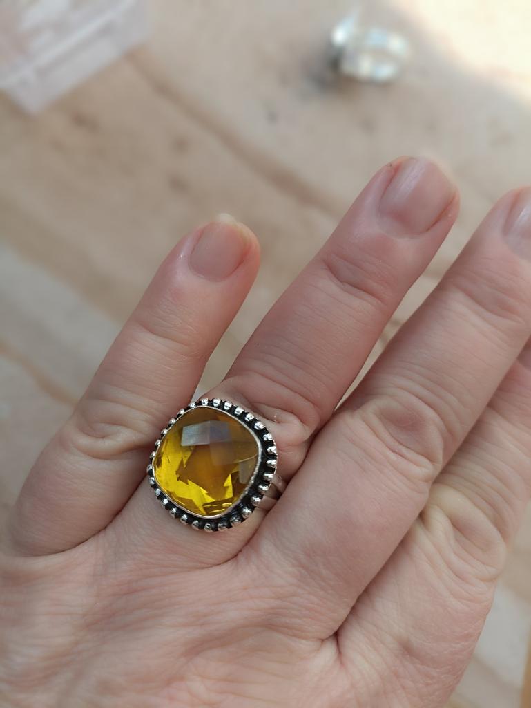 Индийское кольцо с цитрином. Покупала с 15% скидкой с колеса удачи за 756 рублей. Считаю, очень выгодная покупка! Кольцо красивое, смотрится дорого. Вполне возможно, что и серебро, проба стоит. Да и есть у меня уже кольцо с бирюзовым камнем из этого магазина. Я его ношу уже год, и оно выглядит, как новое, и металл не покраснел. Брала 10,5 на российский 20 размер. Пришло в пластиковой коробочке, каждое кольцо в пакетике.