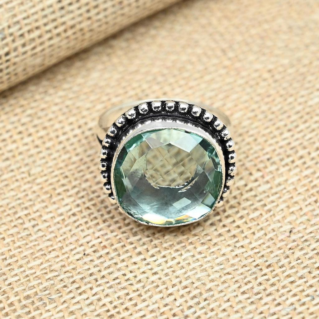 Зеленый аметист драгоценный камень ручной работы стерлингового серебра 925 пробы обещание кольцо подарок для нее