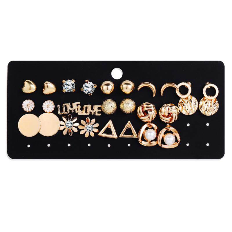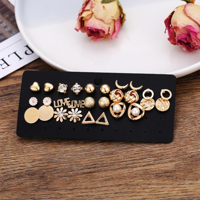 RUI RUI YU 14 пар серег из сплава в стиле ретро, набор серег со стразами и маленькими цветами ромашки и луны