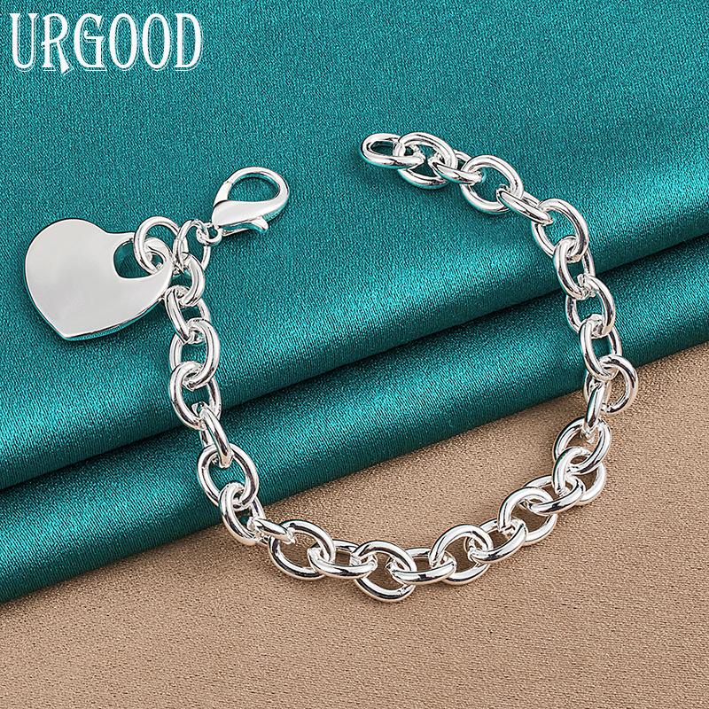 Браслет с подвеской в виде сердца из стерлингового серебра 925 пробы, модные ювелирные изделия — купить товар онлайн с бесплатной доставкой по всему миру!
