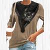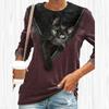 Женские осенние топы, свободная футболка с котом и принтом кота под молнией, повседневная футболка с длинными рукавами, топ, блузка