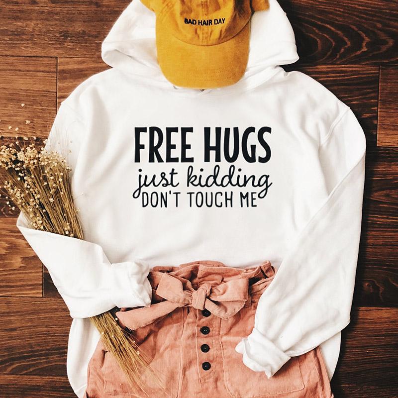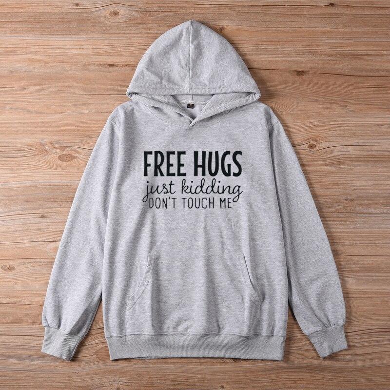 Толстовка с капюшоном FREE HUGS Just Kidding, женская толстовка с капюшоном, забавные пуловеры, модные пуловеры унисекс, топ из чистого хлопка, повседневный джемпер, толстовки