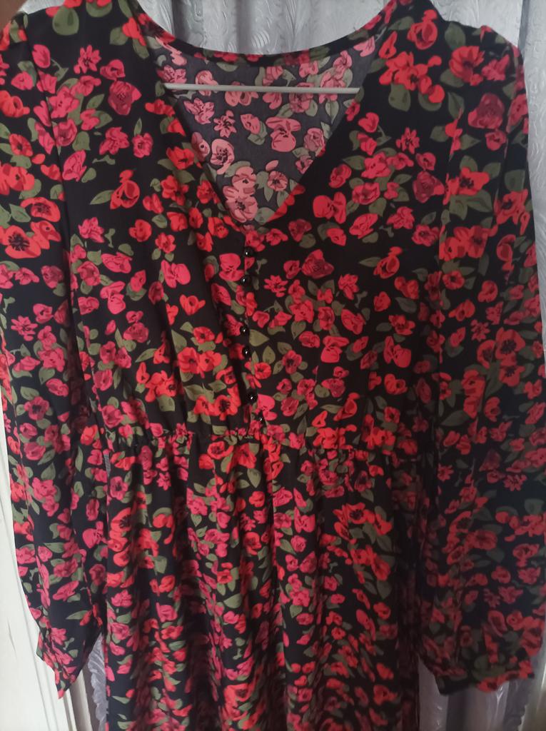 ✨ Материал - тонкая синтетика. В сильную жару такое платье надевать не стоит, а вот на температуру 17-21гр. Цельсия - идеально.