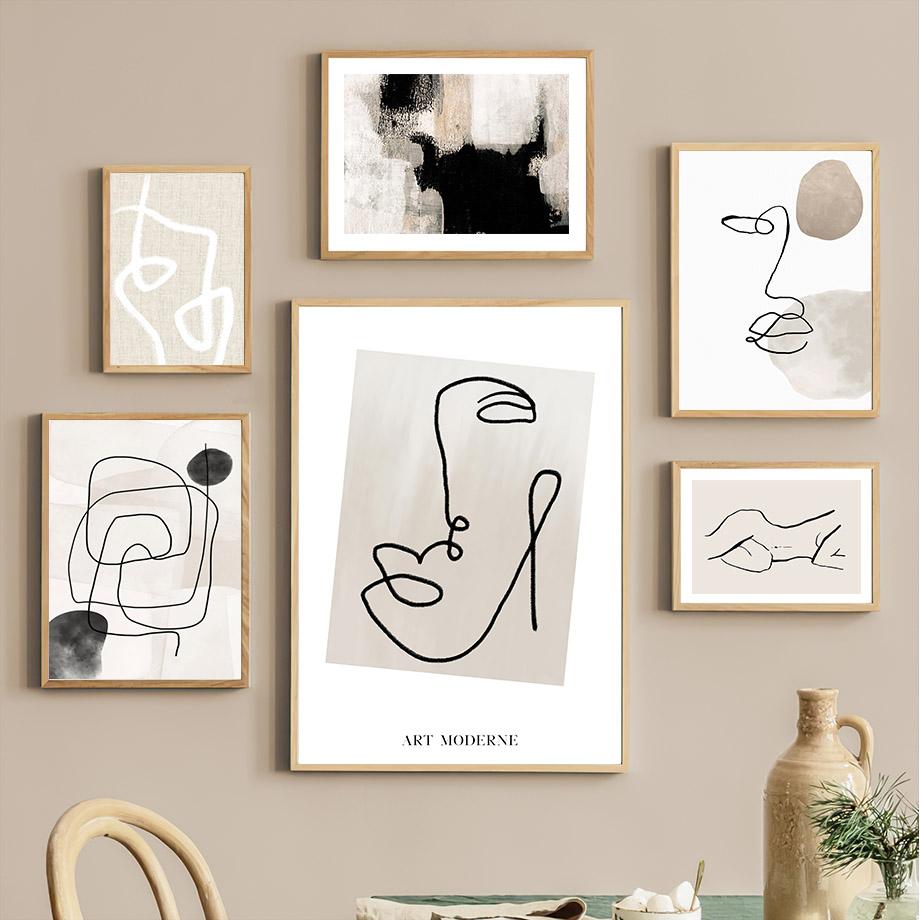 Настенная картина на холсте, черно-белая линия, лицо, акварель, украшение для гостиной, постеры и принты, настенные панно для домашнего салона
